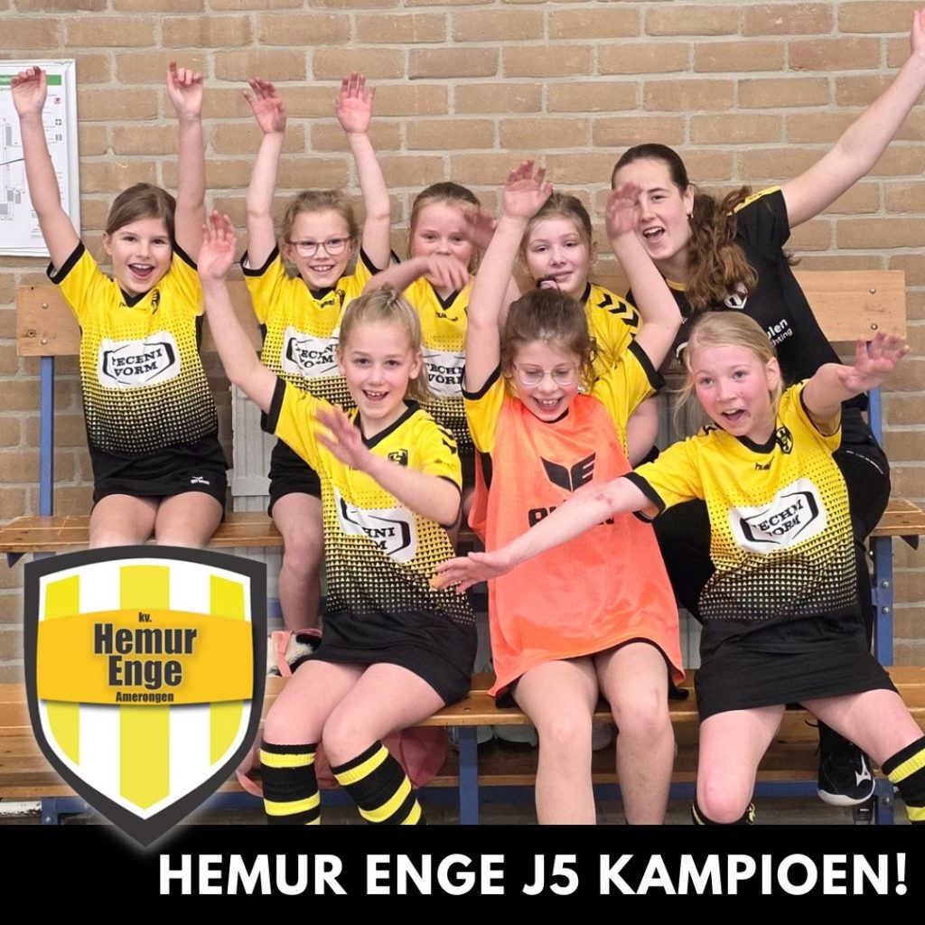 Met een prachtige 6-7 overwinning in Culemborg heeft Hemur Enge J5 afgelopen zaterdag al de titel veiliggesteld. De jonge ploeg, onder leiding van trainers Meike en Britt, liet opnieuw zien over veel talent, inzet en teamspirit te beschikken.